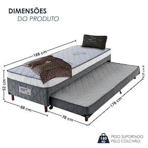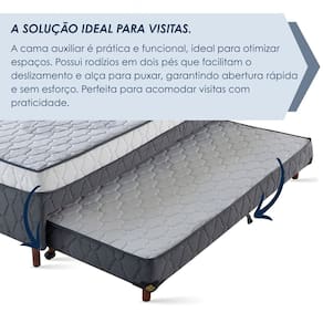 A Cama Box Solteiro com Auxiliar Vitta D-28 é a escolha ideal para quem busca conforto, praticidade e elegância em um único produto. Produzida com espuma selada D-28, oferece o suporte necessário para um descanso de qualidade, enquanto o Euro Pillow com espuma D-20 adiciona uma camada extra de maciez. O tampo é revestido com malha bordada 100% poliéster de gramatura 180g/m², proporcionando toque suave e agradável. A faixa lateral em suede 190g/m² complementa o visual sofisticado do conjunto. Sua estrutura é fabricada em madeira de eucalipto 100% reflorestada, assegurando resistência, durabilidade e compromisso com o meio ambiente. O modelo conta com uma cama auxiliar embutida, ideal para visitas ou espaços compactos, oferecendo uma segunda acomodação de forma prática e discreta. Produto Montado: Sim Abertura para Ventilação: Não Acompanha Cama Auxiliar: Sim Acompanha Colchão: Sim Altura da Base Box (Sem o Colchão): 33 cm Altura do Colchão (Sem a Base Box): 5 cm Altura Máxima dos Pés: 12.0000 Ambiente Principal: Quarto Antiácaro: Sim Antialérgico: Sim Antifungo: Sim Cantoneiras: Sim Certificado: Selo de Desempenho – Compulsório (INMETRO) codigo_ean: 7900288205407 Cor: Branco Gelo / Cinza Claro Cor do Produto: Branco Gelo / Cinza Claro Densidade da Espuma: D-28 Itens Inclusos: 1 Bicama Box e Kit Ferragens Linha ou Coleção: Vitta Manual de Montagem e Instalação: https://product-hub-prd.madeiramadeira.com.br/801844731/documents/d8cc76ad-aef0-4ba5-adc9-8998fc27201f310987652461753968582179.pdf Marca: América Colchões Material da Estrutura: Madeira Maciça Material dos Pés: Eucalipto Necessita Montagem: Sim Nível de Conforto: Macio Origem do Produto: Nacional Peso: 47,5 kg Pillow: Pillow Euro Possui Baú: Não Possui Pillow: Sim Precisa virar: Não Recomendações de Uso, Manutenção e Limpeza: A limpeza deve ser feita com aspirador ou pano úmido com sabão neutro, sem encharcar. Mantenha em ambiente ventilado e longe do sol direto. Revestimento: Poliéster Revestimento da Base Box: Poliéster Tamanho: Solteiro Tamanho de Colchão: Solteiro Tipo de Cama Box: Bicama Box Tipo de espuma: Espuma Soft Tipo do Colchão: Espuma Marca: Não Informado