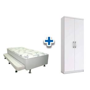 Cama Box Solteiro Conjugado Ortobom White c/ Auxiliar + Armário Multiuso Margarida Branco Abaixo segue os produtos do KIT: Cama Box Solteiro Conjugado Ortobom White c/ Auxiliar + Armário Multiuso Margarida Branco