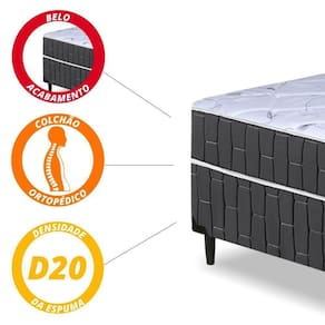 Cama Box Solteiro Conjugado Granada Umaflex Preto / Branco Flor DESCRICAO: A Cama Box Conjugado Granada com 51 cm de altura, que proporciona muito conforto em suas noites de sono! Possui Espuma D20, que oferecem mais conforto e comodidade para as suas noites de sono, garantindo maior conforto ao colchão. O feito de tecido poliés | MODELO: Colchobox Espuma Solteiro Granada Plus | MARCA: Umaflex | MEDIDAS: A: 51cm L: 88cm P: 188cm | COR: Preto / Branco Flor | MATERIAL: Espuma D20 com 1cm; Tampo / Espuma D28 com 5 cm | TECIDO: 100% Poliéster | PES: 12cm | PESO SUPORTADO: 80kg cada lado | PESO: 20kg | INMETRO: Produto Certificado pelo INMETRO | DIFERENCIAL: Colchão Ortopédico | MONTAGEM: Montagem não inclusa. Entregamos até a porta de entrada da casa do cliente ou até a portaria do condomínio. Cor: Preto / Branco Floral