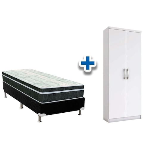 Cama Box Solteiro CRC + Colchão Molas+ Armário Multiuso Margarida Branco Abaixo segue os produtos do KIT: Cama Box Solteiro CRC + Colchão Molas+ Armário Multiuso Margarida Branco