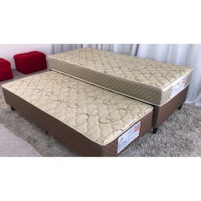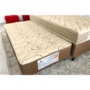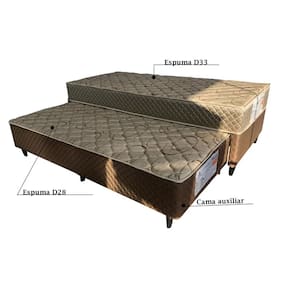 Espuma D33 na “cama superior” e D28 na “cama auxiliar”; Parte de trás da cama auxiliar com rodízio. Estrutura em madeira certificada e chapas de fibra; Tecido da face em Jacquard; Produzimos somente na medida 0,88 m Cama superior suporta até 120 Kg Cama auxiliar suporta até 80 Kg
