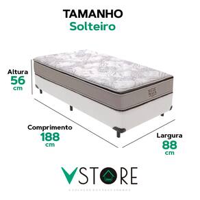 A tecnologia que a sua casa merece está na V-Store! O Conjunto Colchão Four Seasons e Base Box Bravus oferece o equilíbrio perfeito entre conforto e funcionalidade. O colchão, com molas ensacadas, pillow top e EPS, garante excelente suporte e conforto térmico, ideal para casais. Já a base, feita de madeira reflorestada e revestida em tecido sintético, oferece durabilidade e praticidade, com amplo espaço para armazenamento.Característica Do Colchão: Modelo: Four SeasonMarca: V-StoreTamanho: SolteiroDimensões: 88x30x188 (Largura x Altura x Comprimento)Conforto: MédioSistema: Molas EnsacadasPillow: Pillow TopPeso Máximo recomendado: 150 kg (Por pessoa)Proteções: Antiácaro, antialérgico, antifungo, antimofoGarantia: 12 Meses (Espuma) / 10 anos ( Conjunto de Molas Ensacadas)Característica Da Base: Marca: V-StoreModelo: BravusTamanho: SolteiroDimensões: 88x44x188 (Largura x Altura x Comprimento)Estrutura: MadeiraPeso máximo recomendado: 150 kg (Por Pessoa)Altura do Box: 26 cmAltura dos Pés: 6 cmAltura total: 44 cmGarantia: 12 Meses (Estrutura) / 3 meses (Tecido)Selo Ecologicamente CorretoAtenção:- Antes de finalizar sua compra, recomendamos que verifique se as dimensões do produto são adequadas para serem transportadas pelos elevadores, portas, escadas e corredores de sua residência. Ressaltamos que não nos responsabilizamos pelo transporte do produto por meios específicos, como escadas, guinchos ou içamentos.- É possível que hajam leves variações de cor de acordo com o dispositivo que está sendo utilizado como smartphones, computadores, monitores e outros.