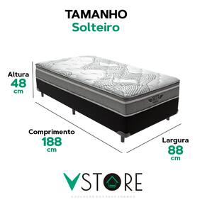 A tecnologia que a sua casa merece está na V-Store! O Conjunto Colchão Ibiza + Base Box Bravus Solteiro da V-Store é a escolha perfeita para quem busca conforto, durabilidade e elegância. O colchão, com Molas Ensacadas e espuma de alta performance, proporciona suporte ideal e conforto intermediário, além de ser protegido contra ácaros, fungos e alergias. A Base Box Bravus, fabricada em madeira reflorestada e revestida com tecido sintético, combina resistência, praticidade e um design sofisticado. Juntos, eles oferecem uma solução completa para transformar seu dormitório com qualidade e estilo. Característica Do Colchão: Modelo: IbizaMarca: V-StoreTamanho: SolteiroDimensões: 88x22x188 (Largura x Altura x Comprimento)Conforto: intermediárioSistema: Molas EnsacadasPillow: Não se aplicaPeso Máximo recomendado: 150 kg (Por pessoa)Proteções: Antiácaro, antialérgico, antifungo, antimofoGarantia: 12 Meses (Espuma) / 10 anos ( Conjunto de Molas Ensacadas)Característica Da Base: Marca: V-StoreModelo: BravusTamanho: SolteiroDimensões: 88x44x188 (Largura x Altura x Comprimento)Estrutura: MadeiraPeso máximo recomendado: 150 kg (Por Pessoa)Altura do Box: 26 cmAltura dos Pés: 6 cmAltura total: 44 cmGarantia: 12 Meses (Estrutura) / 3 meses (Tecido)Selo Ecologicamente CorretoAtenção:- Antes de finalizar sua compra, recomendamos que verifique se as dimensões do produto são adequadas para serem transportadas pelos elevadores, portas, escadas e corredores de sua residência. Ressaltamos que não nos responsabilizamos pelo transporte do produto por meios específicos, como escadas, guinchos ou içamentos.- É possível que hajam leves variações de cor de acordo com o dispositivo que está sendo utilizado como smartphones, computadores, monitores e outros.