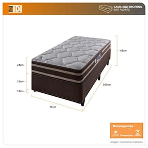Cama Box Solteiro King Marrom + Colchão Espuma D70/D28 Dupla Face Oakland 96x203x66cm