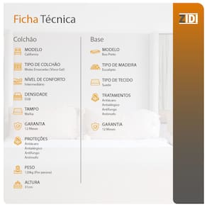 + TIPO DE CONFORTO Possui o nível intermediário de conforto, não sendo nem muito macio e nem firme demais.