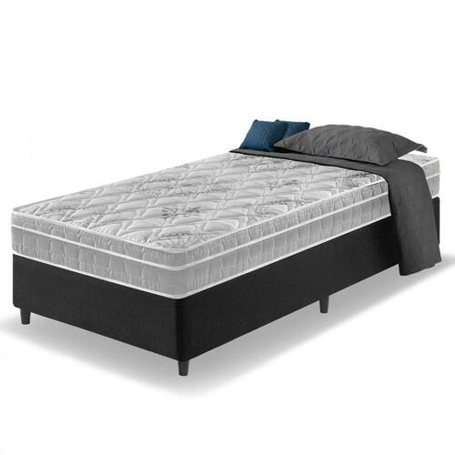 Um colchao precisa de um otimo box para ficar seguro e estavel, que seja forte e bonito e e isso que nosso box oferece. O box e produzido com madeira de Eucalipto para garantir uma estrutura firme e resistente. O acabamento em suede da um toque sofisticado e moderno a base, facilitando tambem a limpeza dela. Para proporcionar ainda mais estabilidade, os pes sao de plastico.