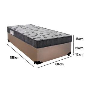 Especificações Técnicas Base Box: Marca: SerenePrime Material: Madeira tratada Proteções: Anticupim - Antimofo Peso máximo recomendado: até 150Kg (por pessoa) Revestimento: material (tecido) sintético Altura da base: 28cm Altura dos pés: 12cm Comprimento: 188cm Largura: 88cm
