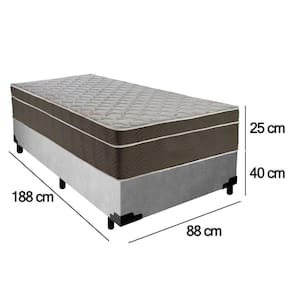 Cama Box Suede Solteiro + Colchão Serene Molas Ensacadas 88x188x65 Cor:cinza