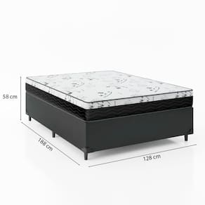 Cama Base Box Viúva 128 com Colchão Espuma D33 One Face PretoO colchão One Face é compostos por poliestireno expandido ( EPS) que juntamente com a espuma de Densidade D33 são responsáveis por toda a sustentação do peso. Eles são indicados para aqueles que sentem dores nas costas em relação aos outros tipos de colchões no Mercado. Famoso pela durabilidade, também suportam mais pesos e são recomendadas para aqueles que procuram um colchão com mais firmeza. Acompanha base box para deixar seu quarto mais elegante.Informações do Colchão: 1. Tecido de revestimento: Poliéster Bordado; 2. Cor: Branco c/ Preto; 3. Modelo: One Face (uma face); 4. Tamanho: Altura: 17 cm, Largura: 128 cm, Comprimento: 188 cm. 5. Peso limite: 120 kg por pessoa. 6. Peso do produto: 4,6 kg 7. Material de estrutura: Espuma D33 e EPS. 8. Tipo de conforto: Intermediário Firme. 9. Garantia: 3 meses. 10. Marca: Bello Box.Especificações Técnicas da Base Box:- Material: Madeira tratada.- Proteções: Antiácaro, Antialérgico, Antifungo, Antimofo.- Peso máximo recomendado: até 100Kg (por pessoa).- Altura da base: 41cm. (29cm c/ 12 cm dos pés).- Quantidade de Pés: 6 pés.- Marca: Bello Box.- Revestimento: Tecido Sintético.- Garantia: 3 meses.- Cor: Preto.- Dimensões do produto (altura x largura x comprimento) Viúva: 41x128x188cm. Importante:- As imagens ambientadas são meramente ilustrativas e podem apresentar itens que não compõe o produto.- As cores do produto podem variar de acordo com o monitor, a iluminação do ambiente ou sua percepção visual.- Verifique se o local de entrega está apto a receber o produto com as dimensões informadas.- Não nos responsabilizamos em subir pelas escadas ou içar o produto.- Montagens, desmontagens e instalações são responsabilidades do cliente. Estes serviços não estão inclusos no valor do produto. Para evitar imprevistos na sua entrega, confira as dimensões do produto no momento da compra e certifique-se de que ele passará por elevadores, portas, escadas e corredores.