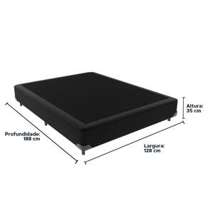 Marca: KazaMix Modelo: Box Cor do Box: Preto Tamanho: Viúvo Dimensões: 128X188X35 (Largura x Comprimento x Altura) Estrutura: Madeira Peso máximo recomendado: 150 kg (Por Pessoa) Altura do Box: 25 cm Altura dos Pés: 10 cm Altura total: 35 cm Garantia: 03 meses Selo Ecologicamente Correto