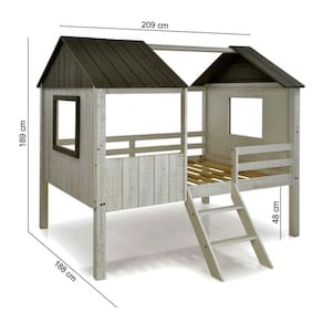 Com design de tábuas de madeira maciça reflorestada em acabamento laca rústico, é um móvel muito resistente, seguro e durável. As laterais da cama são elevadas e a escada é adequada para crianças, garantindo tranquilidade aos pais.