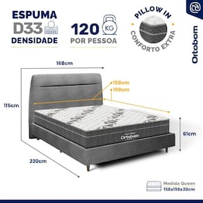 - Dimensões do produto (largura x comprimento x altura): 168x208x32cm Ideal para Colchão Queen: 158x198