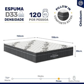 Buscando um colchão com conforto e suporte equilibrados? Nosso colchão de espuma D33, com pillow in para uma camada extra de conforto, é ideal para quem precisa de suporte firme. Suporta até 120 kg por pessoa, proporcionando uma base estável para um sono reparador.