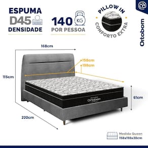 - Dimensões do produto (largura x comprimento x altura): 168x208x32cm Ideal para Colchão Queen: 158x198