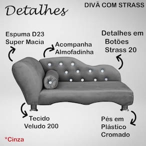 O Divã Cama Caminha Pet Veludo, é uma peça de mobiliário especialmente projetada para oferecer conforto e aconchego ao seu pet de estimação. Conta com uma espuma D23 super macia, que garante que seu pet tenha o suporte necessário para se sentir confortável, oferecendo um local aconchegante e macio para descansar e relaxar. Feito em uma estrtura toda em Madeira de Eucalipto e MDF modelado, muito resistente e segura. Divã produzido no tecido é veludo 200, resistente e de fácil limpeza, conta também com detalhes de botões de strass que são um toque de luxo no design do designer, adicionando um brilho sutil e elegante, deixando um ambiente ainda mais sofisticado para seu lar e seu pet. Os 04 pés são em plástico cromado, que fornecem estabilidade ao divã, e também o elevam ligeiramente do chão, o que pode ser benéfico para a limpeza do ambiente. Este produto chegará na sua casa separado em 01 volume.