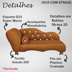 O Divã Cama Caminha Pet Veludo, é uma peça de mobiliário especialmente projetada para oferecer conforto e aconchego ao seu pet de estimação. Conta com uma espuma D23 super macia, que garante que seu pet tenha o suporte necessário para se sentir confortável, oferecendo um local aconchegante e macio para descansar e relaxar. Feito em uma estrtura toda em Madeira de Eucalipto e MDF modelado, muito resistente e segura. Divã produzido no tecido é veludo 200, resistente e de fácil limpeza, conta também com detalhes de botões de strass que são um toque de luxo no design do designer, adicionando um brilho sutil e elegante, deixando um ambiente ainda mais sofisticado para seu lar e seu pet. Os 04 pés são em plástico cromado, que fornecem estabilidade ao divã, e também o elevam ligeiramente do chão, o que pode ser benéfico para a limpeza do ambiente. Este produto chegará na sua casa separado em 01 volume.