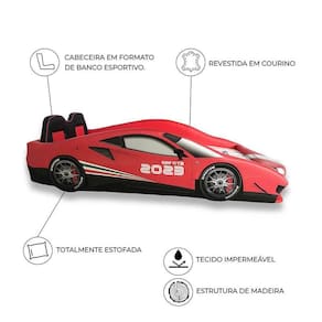 A Cama Carro Solteiro Dream GT3 é tamanho solteiro para colchão de 1,88m x 0,88m x 0,14m.