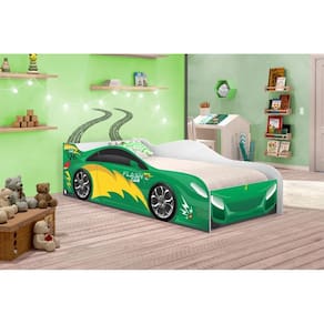 Cama Carro Infantil Raios Verde com Colchão