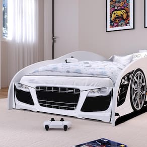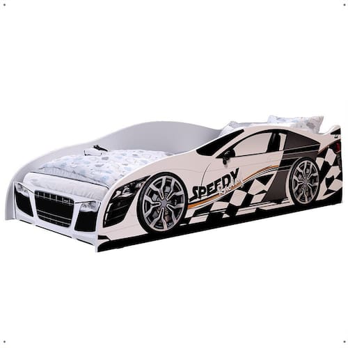 Cama Carro Solteiro Infantil Speedy Montessoriana MDF Proteção Lateral Decoração Tema Corrida Quarto Menino - Branco - RPM