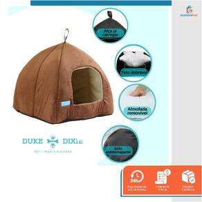 As caminhas pets da duke & dixie foram projetadas num formato de tenda e casa para cães e gatos usando um tecido suave e super confortável, veludo e poli espuma macio para dar todo o aconchego para o descanso do seu pet.