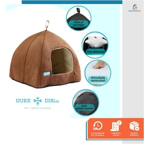 As caminhas pets da Duke & Dixie foram projetadas num formato de tenda e casa para cães e gatos usando um tecido suave e super confortável, veludo e poli espuma macio para dar todo o aconchego para o descanso do seu Pet.CONFORTO COMO PRIORIDADE: O design fechado cria um retiro aconchegante e convidativo que promove conforto, segurança e privacidade; ajuda animais de estimação ansiosos a se sentirem seguros e ótimo para cães e gatos que adoram se aconchegar e se aconchegar durante o sonoEXCELENTE VISUAL INTERIOR: O estilo atemporal de nossas camas de pelúcia veludo permite que elas se adaptem perfeitamente a qualquer decoração.CASA CONFORTÁVEL: O seu formato de barraca tenda/cama interna dá ao seu animal de estimação um toque de privacidade e cria uma boa sensação de segurança.FÁCIL DE MANTER - CUIDADO FÁCIL: A barraca é lavável na máquina sem perder a sua forma, possui uma almofada removível que é multiuso e pode ser usada dentro ou fora da tenda.PROJETADO PARA DURAR: Fabricamos cuidadosamente nossas casinhas macias para cães e gatos para dar a máxima durabilidade.PERFEITO PARA VIAGENS: Dobrável para portabilidade e fácil armazenamento, tornando-o um acessório ideal para viagens e visitas a amigos e familiares.LAVÁVEL: O tecido utilizado na fabricação é fácil de lavagem e de secagem rápida.Especificações técnicas:Medidas: Diâmetro: 45cm x Altura: 47cmMaterial: Tecido Oxford, Poliéster, AlgodãoFundo: Lona ImpermeávelRef.: 3043312Marca: Duke & Dixie