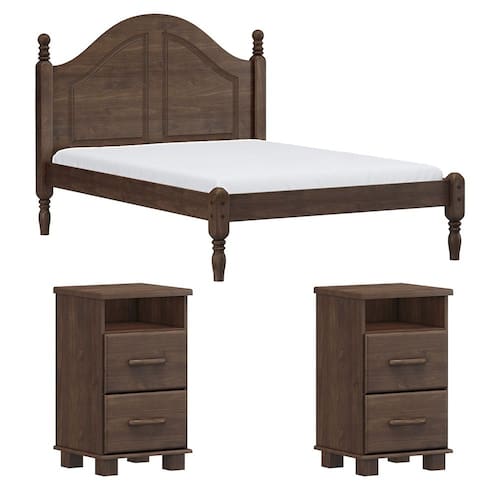 Cama Casal 02 Mesas de Cabeceira Madeira Maciça Cafe Milani Store - Marrom