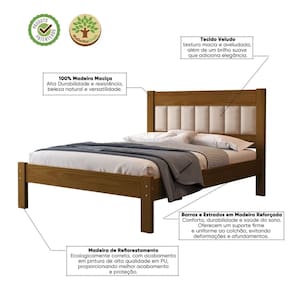 Materiais Premium: - 100% Madeira Maciça de Pinus de reflorestamento - Acabamento em tecido veludo de alta qualidade - Barras e estrados em madeira reforçada para maior durabilidade - Suporta até 150kg por pessoa com segurança - Adequada para regiões com maior umidade devido às propriedades naturais da madeira