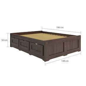 A cama de Casal 6 gavetas Dreams, é ideal para colchão de 1,38 metros de largura por 1,88 metros de comprimento. Não acompanha colchão. A cama foi desenvolvida para a otimização de espaço com a praticidade de possuir 6 gavetas funcionais. Fabricada em Madeira Maciça de Pinus com acabamento em Verniz PU, as gavetas funcionam com deslizantes de plástico com uma travessa central. Os estrados são de Madeira maciça de Pinus com reforço central todos parafusados.