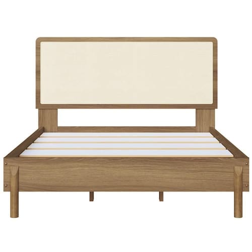 Cama Casal 27055 combina design escandinavo com praticidade para o dia a dia. Estrutura em MDP (15/25mm) e acabamento em pintura BP. No estilo minimalista, é composta por aplique de tela sintética (PVC com poliéster), pés em madeira maciça eucalipto (centrais em MDP 25mm) e furação extra na cabeceira para ajuste de altura. Medidas indicadas do colchão casal 138x188cm (não acompanha colchão). Produto entregue em 3 volumes.