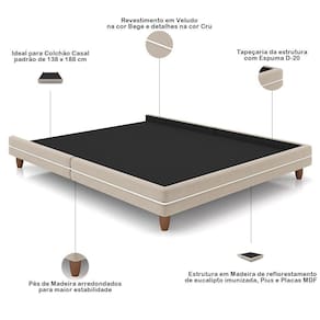 Altura: 28 cm | Color: Bege | ColorFamily: Bege | ColorSimple: Bege | ColorSupplier: Bege | Cor: Bege | Largura: 148 cm | Material: Estrutura em madeira reflorestada, Espuma D-20, Veludo | MaterialFamily: Madeira, Espuma | Model: Suném | Modelo: Suném | OriginCountry: Brasil | OriginState: PR | Peso: 51 kg | Peso máximo suportado por cama: 250 kg | ProductContents: 01 Cama | ProductHeight: 28 cm | ProductInstructions: Produto para uso em ambiente interno, nao devendo ficar exposto ao sol, calor e umidade excessivos. | ProductLength: 193 cm | ProductWarranty: 90 dias após o recebimento do produto | ProductWeight: 51 kg | ProductWidth: 148 cm | Requer montagem: Sim, sugerimos a contratação do nosso serviço de montagem (para os CEPs em que o serviço está dispon | SizeDescription: Altura: 28 cm x Largura: 148 cm x Profundidade: 193 cm | SupplierSimpleName: Cama Casal Base Box Pés Madeira 148cm Suném P05 Veludo Bege - Lyam Decor | Tamanho da cama: Casal | Tipo de cama: Box Casal