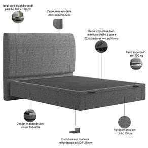 Cama com base baú, abertura pistão a gás e excelente espaço de armazenamento.