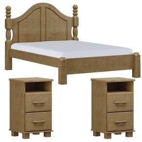 Modelo: Cama Casal Clássica 02 Mesas de Cabeceira Madeira Maciça Milani Store