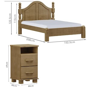 Conjunto Cama Casal Classica 02 Mesas de Cabeceira projetado para proporcionar charme, sofisticação e funcionalidade ao seu ambiente. A cama, com design clássico e atemporal, é produzida em madeira maciça de pinus de reflorestamento, garantindo resistência e durabilidade. Sua pintura acetinada com verniz PU e UV oferece um acabamento refinado e proteção extra, realçando a beleza natural da madeira. Os pés torneados em madeira maciça adicionam um toque de elegância e robustez à estrutura. Ideal para colchão de casal tamanho 1,38x1,88m. Não acompanha colchão. As mesas de cabeceira, também em madeira maciça de pinus de reflorestamento, seguem o mesmo padrão de qualidade e acabamento. A pintura acetinada com verniz PU e UV proporciona um toque suave e resistente, realçando a beleza da madeira e protegendo contra desgastes. Com 02 gavetas equipadas com corrediças telescópicas para deslizamento suave e um nicho adicional para organização de livros ou objetos decorativos, as mesas de cabeceira aliam praticidade e sofisticação. O tampo de 25mm de espessura confere robustez ao design, enquanto os puxadores e pés em madeira maciça garantem um acabamento natural e refinado. Juntos, esses móveis criam um ambiente harmonioso, perfeito para o seu descanso e organização. Estes móveis chegarão em sua casa separados em 06 volumes.