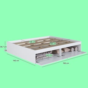Otimizar espaços abertos é uma das metas da Art In Móveis. Por isso, criamos a Cama Casal TÓKIO. Este produto foi produzido em excelente material MDP, com acabamento em Finish Foil Acetinado, que garante maior resistência e qualidade ao seu móvel. A essência de criar soluções que trazem mais conforto à sua vida é o grande diferencial dos produtos Art In Móveis. Cada nova ideia é uma mistura de criatividade, funcionalidade e muita dedicação. Produto Montado: Sim Acabamento da Porta: Finish Foil Acompanha Cama Auxiliar: Não Acompanha Colchão: Não Altura do Estrado até o Chão: 31,7 cm Altura do Estrado Superior até o Chão: 33.2000 Ambiente Principal: Quarto codigo_ean: 7909903975756 Complexidade da Montagem: Baixa: pode ser montado por uma pessoa sozinha Cor: Branco Cor do Produto: Branco Cor Flex: Não Escala de Brilho: Semi-Brilho Escala de Brilho da Porta: Semi-Brilho Extensível: Não Informações Complementares: 14 Sapatas Plásticas Itens Inclusos: 1 Cama e Manual de Montagem Manual de Montagem e Instalação: https://product-hub-prd.madeiramadeira.com.br/961015/documents/29cea598-1742-407d-9dc2-df865c3b7bbc2477216530217292619206611.pdf Marca: Art in Móveis Material da Porta: MDP Material do Estrado: MDP Material do Puxador da Porta: Plástico Material Principal: MDP Montagem Flex: Não Necessita Montagem: Sim Origem do Produto: Nacional Permite a Utilização de Cama Auxiliar: Não Peso: 66,3 kg Peso Suportado por cada cama: 200.0000 Possui Baú: Não Possui Escrivaninha: Não Possui Espelhos: Não Possui Gavetas: Não Possui Grade: Não Possui Nichos: Não Possui Pés: Não Possui Portas: Sim Possui Prateleiras: Não Possui Rodízio: Não Quantidade de Portas: 04 Recomendações de Uso, Manutenção e Limpeza: Deve ser feita com pano macio e seco ou levemente umedecido com água e sabão neutro. Não devem ser utilizados abrasivos como palha de aço e objetos cortantes. Sistema de Montagem: Parafusos e Minifix Tamanho da Cama: Casal Tamanho do Colchão Indicado (L x C): 138cm x 188cm Tipo de Cama: Convencional Tipo de Colchão: Casal Tipo de Dobradiça/Corrediça da Porta: Metálica Tipo de Estrado: Fixo Tipo de Porta: Basculante Tipo de Puxador da Porta: Externo Trava de Segurança: Não