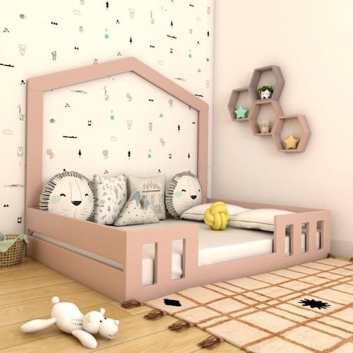 Cama Casal com Casinha Montessoriana Play Rosa. Traz a filosofia montessoriana, oferecendo liberdade e autonomia para a criança com um toque a mais de modernidade. A Linha Play possui elementos que proporcionam maior praticidade e deixam o ambiente clean e alegre. Possui estrutura reforçada, sendo utilizado MDF de 2,5cm e madeira maciça em sua fabricação, proporcionando maior durabilidade para o móvel. A pintura laca traz o acabamento de alto padrão. Utilizado colchão padrão casal (1,88x1,38mt). Casinha montessoriana montada na parede, proporcionando maior espaço no quarto. Disponível sem casinha. Pode ser adquirida nas versões Cama simples e Bicama. Marca: Timber Ean: 7909903282113