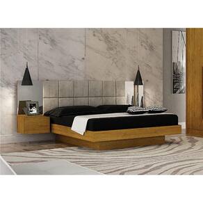 Cama Casal com Espelho Painel Estofado - Braga - Leifer Móveis