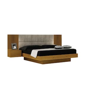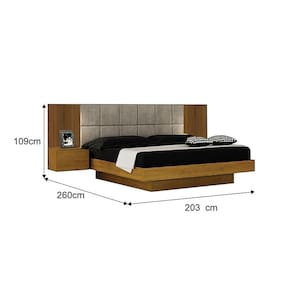 Particularidades da Cama: Características: - Fabricado em MDF; - Para colchão de 1,58m x 1,98m; - Painel estofado; - Mesa de cabeceira suspensa; - Corrediça telescópica;