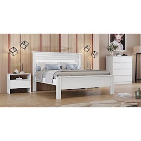 Cama Casal com Painel Ripado - Rivera-Branco - Móveis Novo Horizonte
