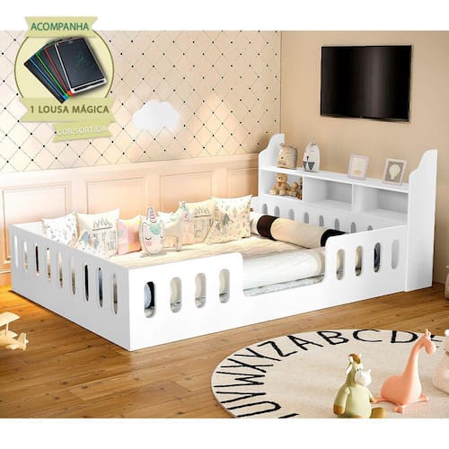 Com um design seguro e funcional, esta cama é perfeita para criar um ambiente acolhedor e aconchegante. Com altura próxima ao chão, seu filho poderá subir e descer da cama com facilidade, promovendo autonomia e desenvolvimento motor. Além disso, a estrutura resistente e durável garante segurança durante o sono. O estilo minimalista e moderno se adapta perfeitamente a qualquer decoração de quarto infantil. Proporcione ao seu filho uma experiência única.