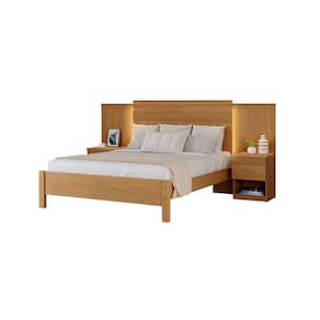Essa cama é produzida toda em MDF com pintura em UV e verniz de alta resistência. O painel central possui detalhe ripado na parte frontal e moldura trabalhada na parte superior, além de possuir iluminação de LED nas laterais com interruptores individuais em cada lado. Os painéis laterais também possuem molduras superiores trabalhadas e são fixados nas mesas de cabeceira permitindo melhor sustentação. Além disso as mesas de cabeceira são compostas por tampo de 25mm, nicho na parte inferior e duas gavetas sendo uma menor com detalhe fresado igual ao da cabeceira e outra maior. A peseira possui pés em MDF de 50mm. O estado é todo em MDF com travessas de 25mm e ripas com largura de 135mm, todos travados e parafutilizados. Acabamento da Gaveta: Pintura Texturizada UV Acabamento dos Pés: Pintura Acompanha Cama Auxiliar: Não Acompanha Colchão: Não Altura do Estrado até o Chão: 23 Altura dos Pés: 7 Ambiente Principal: Quarto Complexidade da Montagem: Média: pode ser montado por mais de uma pessoa e/ou necessite de maior conhecimento para montagem Cor: Freijó Cor do Produto: Freijó Escala de Brilho: Fosco Escala de Brilho da Gaveta: Fosco Extensível: Não Gaveta com Chave: Não Informações Complementares: O produto possui LED com interruptor individual em ambos os lados Itens Inclusos: 1 Cama, Kit Ferragens e Manual de Montagem Linha ou Coleção: Granada Manual de Montagem e Instalação: https://cdn2.madeiramadeira.com.br/atributo/moveis-fazzio/1247287-cama-doratta-1-40.pdf Material da Gaveta: MDF Material do Estrado: MDF Material dos Pés: MDF Material Principal: MDF Necessita Montagem: Sim Origem do Produto: Nacional Permite a Utilização de Cama Auxiliar: Não Peso: 119 kg Peso Máximo por Gaveta: 4 Possui Baú: Não Possui Gavetas: 04 Possui Pés: Rodapé Possui Portas: Não Possui Prateleiras: Não Possui Rodízio: Não Recomendações de Uso, Manutenção e Limpeza: Usar pano levemente umedecido com agua Sapatas Niveladoras: Não Sistema de Montagem: Parafusos com porca eliptica, parafusos atarraxantes, cavilhas Tamanho do Colchão Indicado (L x C): 138 x 188cm Tipo de Cama: Convencional Tipo de Colchão: Casal Tipo de Corrediça da Gaveta: Metálica Telescópica Tipo de Estrado: Fixo Tipo de Puxador da Gaveta: Embutido Marca: Móveis Fazzio