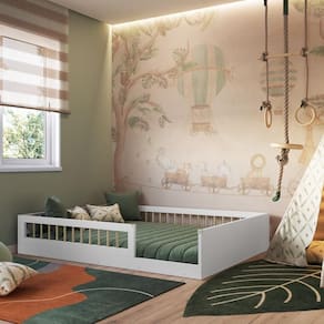 A Cama Casal Infantil de Chão Montessoriana para Menino e Menina com Grade de Proteção Lateral da Completa Móveis traz o melhor do estilo montessori para o quarto do seu filho. Um conceito lúdico para estimular a autonomia e aperfeiçoar o potencial criativo das crianças desde a primeira infância, trazendo leveza e um toque diferenciado no design.