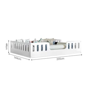 Cama Casal Infantil Montessoriana Helo - BrancoCama Casal Helo traz elegância e deixa as noites de sono ainda mais aconchegantes. Além de ser feita em material resistente de qualidade e possuir grades para segurança.Tipo: CamaModelo: HeloCor: Branco Garantia: 90 diasProduto DesmontadoNão acompanha colchãoEstrutura 100% MDFIdeal para 2 crianças ou pais e crianças juntos (maior espaço)Medida ideal de colchão 1,88 x 1,38 / Casal padrão / Espessura 14 cm - Não acompanha colchãoPintura UV Verniz BrilhoMedidas:Altura: 44cmLargura: 205cmComprimento: 144cmATENÇÃOIMAGENS MERAMENTE ILUSTRATIVAS REALIZADO EDIÇÃO, PODENDO HAVER UMA PEQUENA VARIAÇÃO DE COR DEPENDENDO DE CADA TELA OU MONITOR.Cama Casal Infantil Montessoriana Helo - Branco