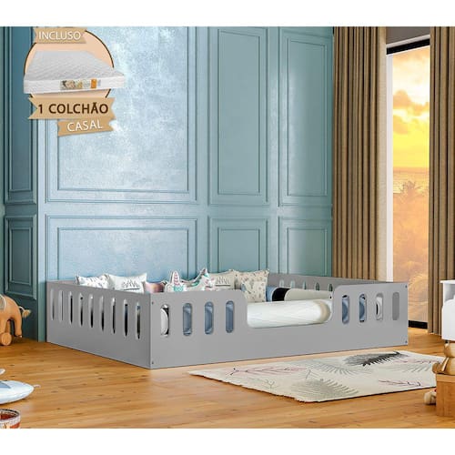 Tipo: Cama Modelo: Helo Cor: Cinza Garantia: 90 dias Produto Desmontado Estrutura 100% MDF Pintura UV Verniz Brilho Acompanha Colchão Colchão com espuma D33