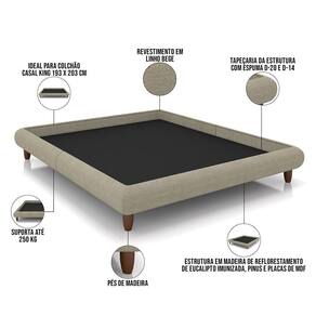 ColorSimple: Bege | ProductContents: 01 Cama | OriginCountry: | OriginState: PR | Cor: Bege | SizeDescription: Largura: 210 cm x Altura: 28 cm x Profundidade: 215 cm | Altura: 28 cm | ProductWarranty: 90 dias após o do produto | Peso: 72 Kg | ProductWidth: 210 cm | Peso máximo suportado por cama: 250 kg | Modelo: Otto | ProductWeight: 72 kg | Tipo de cama: Estofada | ProductInstructions: Produto para uso em ambiente interno, nao devendo ficar exposto ao sol, calor e umidade excessivos. | Material: Madeira de Eucalipto, Espuma | ColorSupplier: Bege | Requer montagem: Sim | Largura: 210 cm | ColorFamily: Bege | Tamanho da cama: King | Color: Bege | MaterialFamily: Madeira de Eucalipto, Espuma | SupplierSimpleName: Cama Casal King Pés de Madeira 210cm Otto P05 Linho Bege - Lyam Decor | ProductHeight: 28 cm | Model: Otto | ProductLength: 215 cm