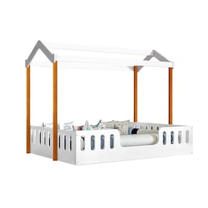 Cama Casal + Kit D28 Casinha Montessoriana Ágatha Branco/amêndoa Incluso Luminária