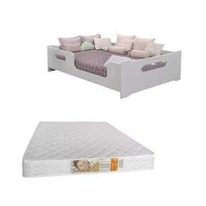 KIT: CAMA MONTESSORIANA CASAL COM COLCHÃO D33 inclusoA nossa cama montessoriana casal é ideal para crianças que estão em transição do berço para cama, e claro, eles não dormem sozinhos, e foi pensando nisso que desenvolvemos essa cama, para o conforto dos papais até seus pequenos pegarem no sono!Tipo: CamaModelo: Montessori casalCor: BrancaGarantia: 90 diasProduto DesmontadoEstrutura em MDFPés em MDFPintura UV Verniz acetinadoMedidas:Altura: 44cmLargura: 143cmComprimento: 193cmAcompanha Colchão 100% ESPUMA D33, Medidas Casal Padrão 138x12x188 - Dupla Face Com selo do Inmetro.