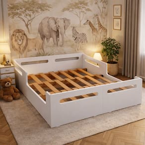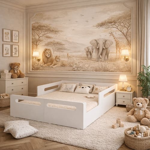 A Cama Montessoriana Infantil Branca é perfeita para quem busca segurança, conforto e desenvolvimento para a criança. Inspirada no método Montessori, ela possui altura baixa e proteção lateral, permitindo que a criança suba e desça da cama com facilidade e segurança, estimulando a autonomia desde cedo.