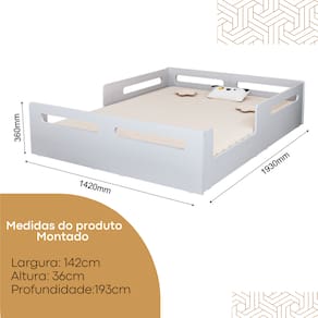 Comprimento: 193 cm Largura: 142 cm Altura da base até o chão: 36 cm