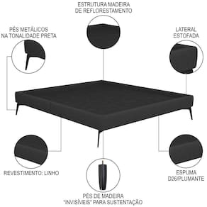 A Cama Casal Queen com Cabeceira 165cm Pés Metálicos Elisa S05 Linho Preto, da Mpozenato, é uma cama moderna e de design elegante, perfeita para qualquer quarto de casal!