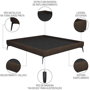 A Cama Casal Queen com Cabeceira 165cm Pés Metálicos Elisa S05 Veludo Marrom, da Mpozenato, é uma cama moderna e de design elegante, perfeita para qualquer quarto de casal!